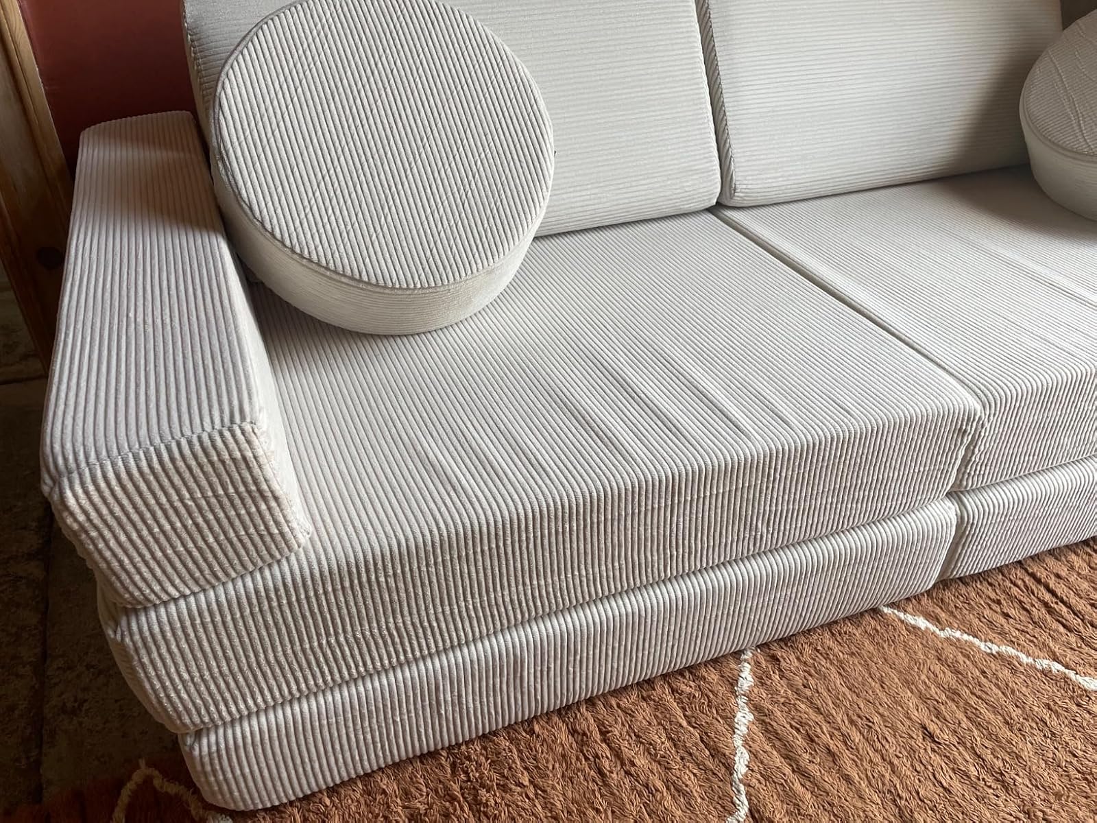 Ce canapé était la pièce manquante à la salle de jeu de notre enfant. Il est doux, confortable, la couleur est très belle. Il nous permettra aussi d'avoir deux matelas d'appoint pour des invités.