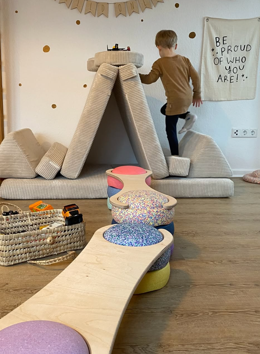 Les tout-petits explorent en rampant, apprivoisent l’équilibre et font leurs premiers pas en toute sécurité, gagnant en confiance et en coordination. Les plus grands, eux, se dépensent en sautant, grimpant et tenant l’équilibre sur leurs propres constructions.