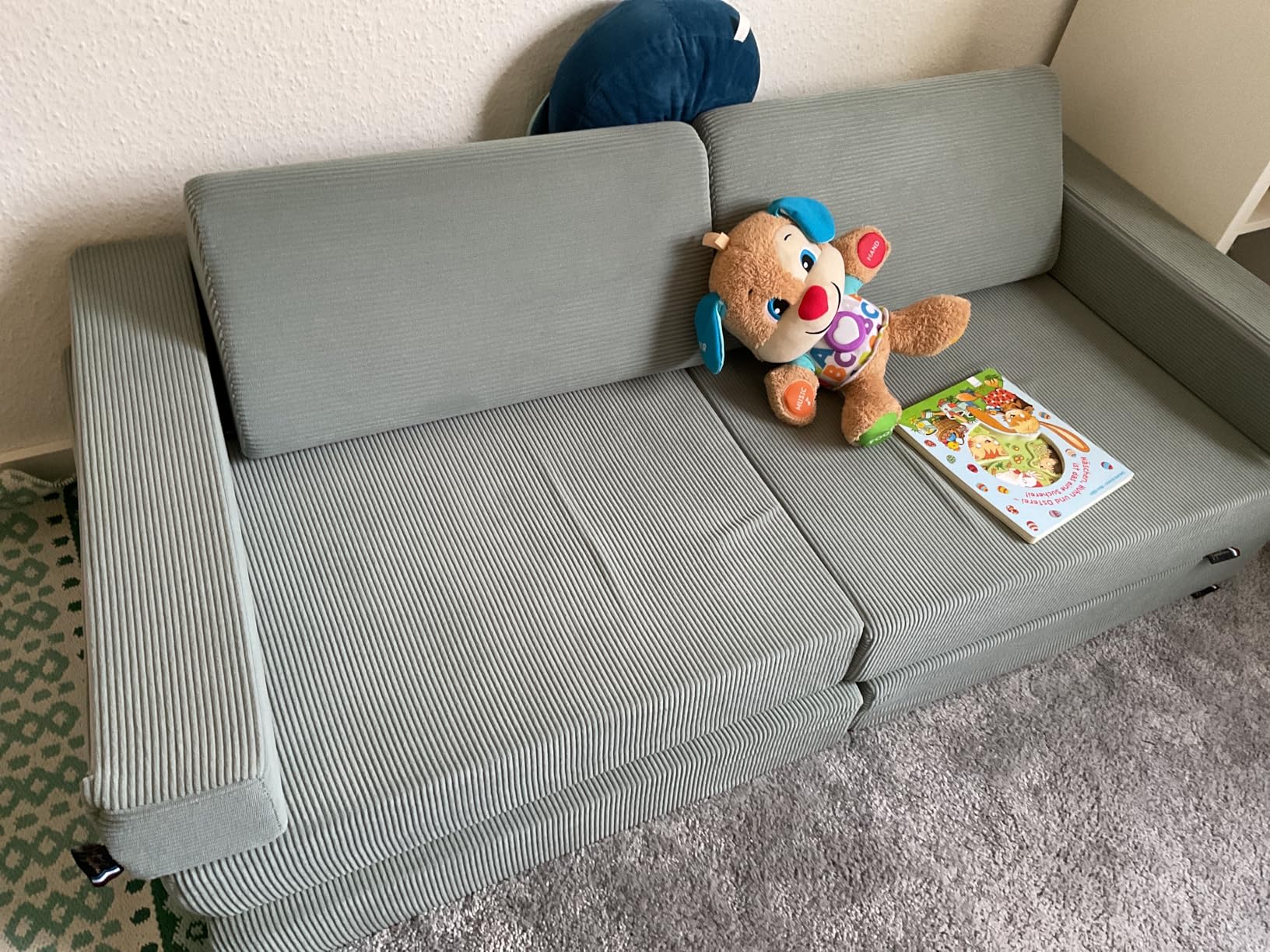 Ce canapé était la pièce manquante à la salle de jeu de notre enfant. Il est doux, confortable, la couleur est très belle. Il nous permettra aussi d'avoir deux matelas d'appoint pour des invités.